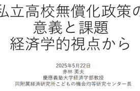 【講演】東京都立大学MEcシンポジウムで「経済学で考える高校授業料無償化政策と高校入試制度」